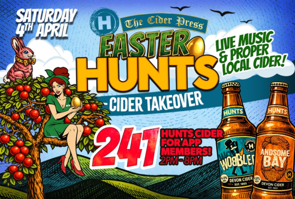 Plymouth, April 2026 - The Cider Press, Plymouth's beloved cider-themed pub, is set to host an exciting Hunts Cider Takeover this Easter Weekend, bringing the very best of Devon's cider-making tradition to the heart of the city.