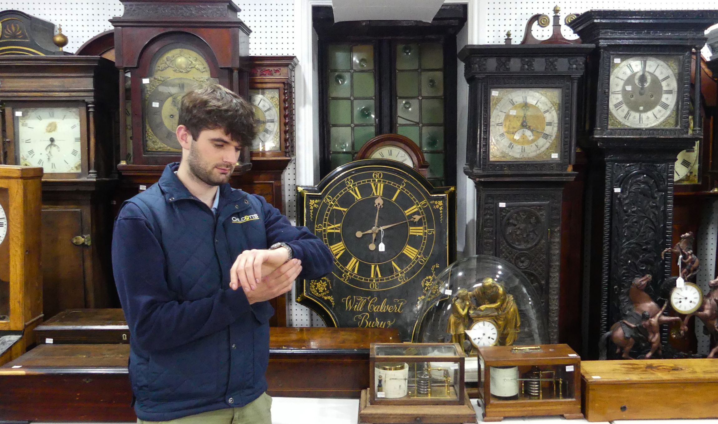 Auctioneer Barnaby Willis, who catalogued the monumental collection said: “This was clearly a massive passion for the collector, with so many superb examples of clocks and barometers plus an extensive assortment of parts and tools including lathes, drills and precision tools. He was so invested in his hobby that he became an ‘at home horologist’ amassing not just clocks and barometers but also horology-based parts, equipment and tools. We have recreated his workshop at the Dolphin Saleroom to give a sense of his wonderful obsession.